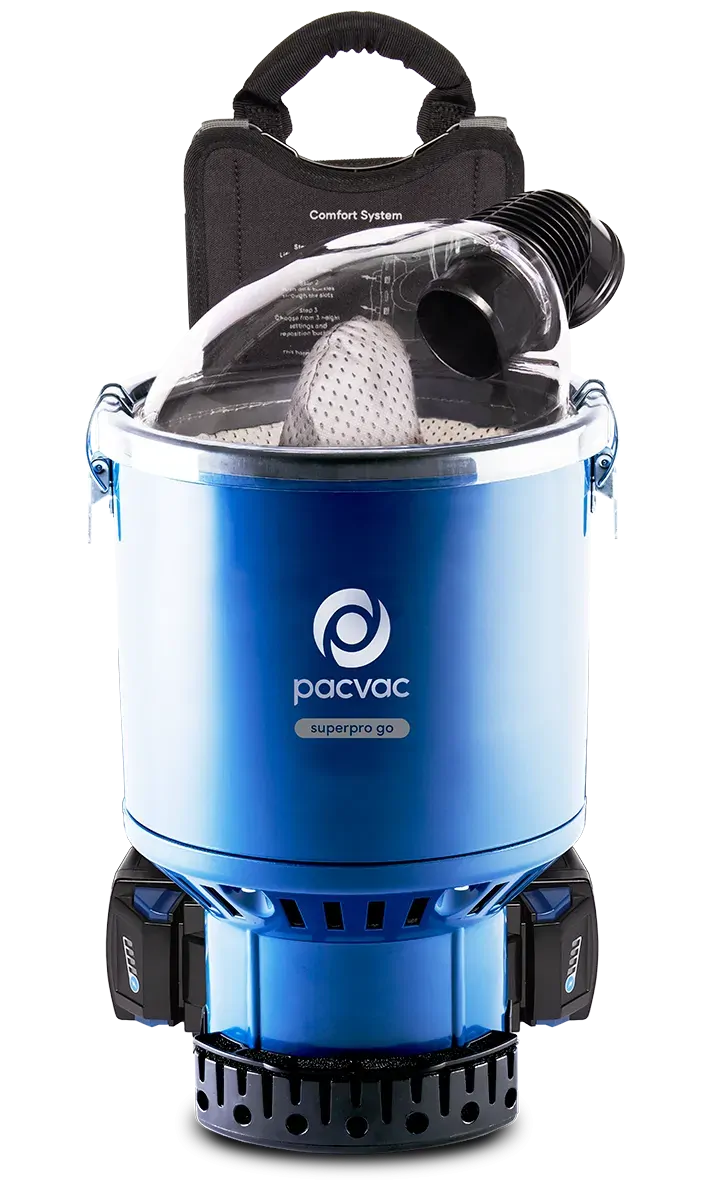 Designed with advanced battery-power and a brushless motor, this cordless backpack vacuum is the perfect choice if you are looking for manoeuvrability, efficiency and suction for large scale commercial cleaning. The Superpro battery 700 advanced features a HEPA rated Hypercone? filter, delivering cleaner air for your environment. We want you to be comfortable when you wear your backpack vacuum, so we partnered with leading ergonomists to create a lightweight body moulded frame and an extra comfy harness with thick padding in all the right places. We provide you with four battery packs, two are required for machine operation and the other two are conveniently supplied as spares to keep you cleaning longer. *Superpro battery 700 advanced comes with five disposable paper cone dust bags and two reusable SMS cone dust bags in the box.